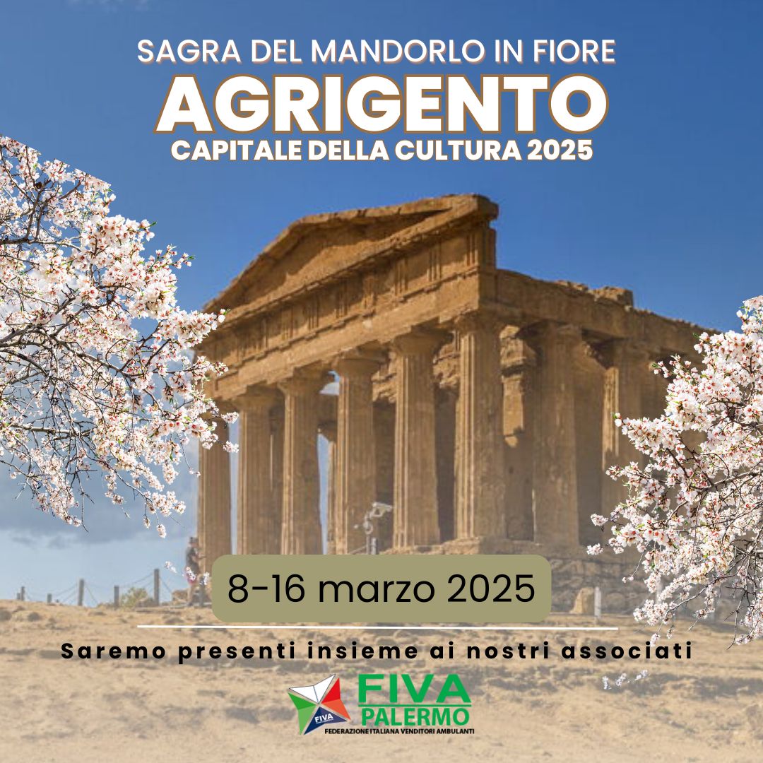 In occasione di Agrigento Capitale della Cultura 2025, la Sagra del Mandorlo in Fiore accoglierà anche noi insieme agli associati FIVA Palermo, dall’8 al 16 marzo.